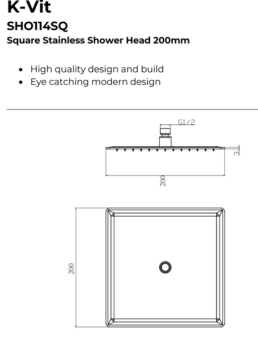 Kartell K-VIT Square Stainless Shower Head - Chrome (SHO114SQ) (SHO115SQ)(SHO116SQ) Upgrade your shower experience with the Kartell K-VIT Square St...