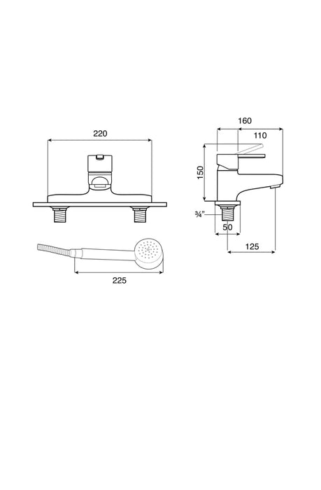 - Diverter: Integrated diverter to switch between bath and shower functions