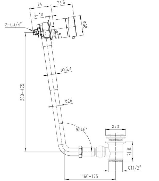 This product is suitable for most standard bathtubs, offering universal compatibility with both modern and traditional bath styles. The valve is designed for easy installation, making it an ideal solution for new and existing bathroom setups.