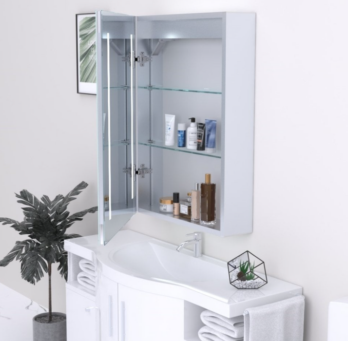 With two internal glass shelves, this cabinet offers ample room for organizing toiletries, grooming tools, or cosmetics in a neat, accessible way.