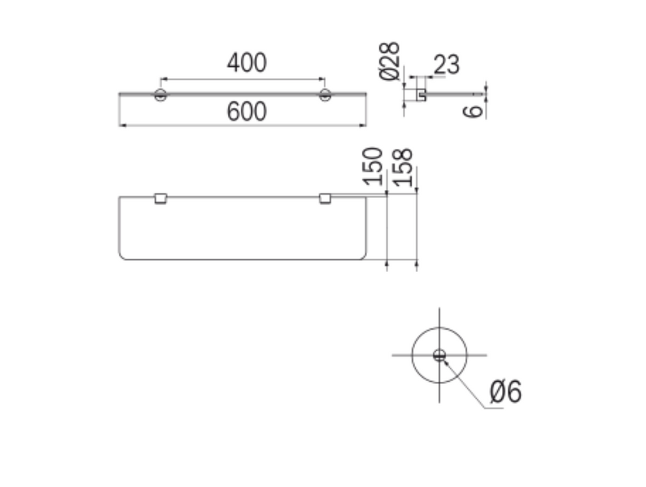 Depth: 16 cm – Offers ample surface area without occupying unnecessary space - Glass Thickness: 6 mm – Sturdy, durable glass for reliable support