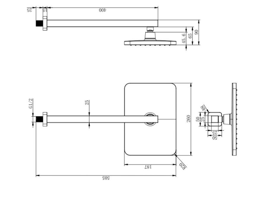 Square Fixed Overhead Drencher – Delivers a spa-like rainfall effect for full-body relaxation.