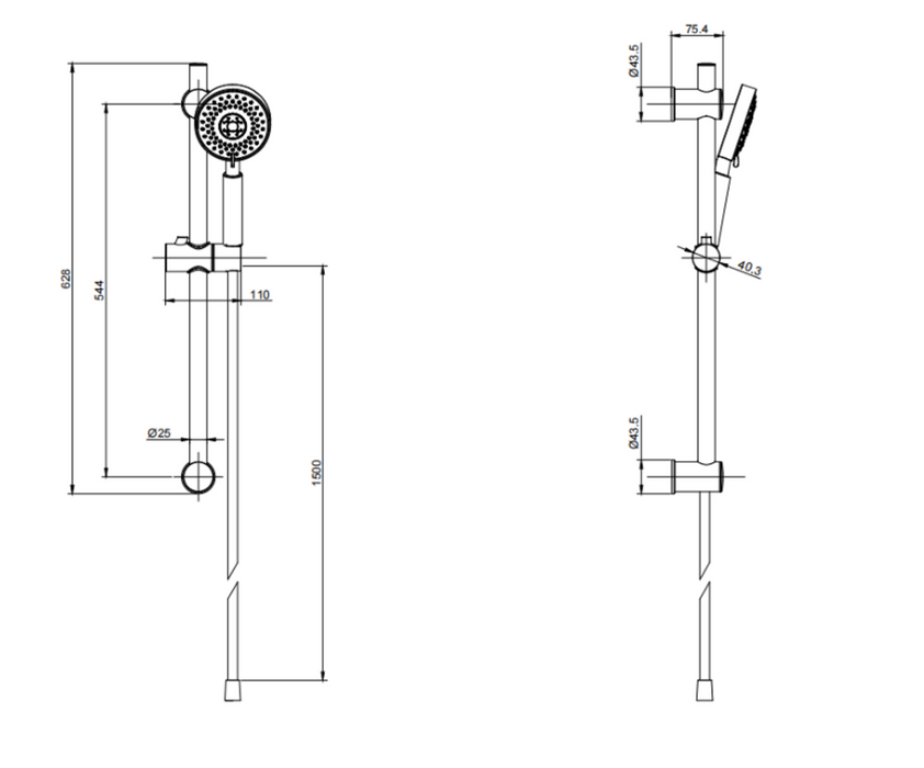 The thermostatic concealed valve ensures consistent and safe water temperature, while the fixed overhead drencher provides a luxurious rainfall effect for ultimate relaxation. The adjustable slide rail kit with handset adds everyday practicality, offering flexibility for all users.