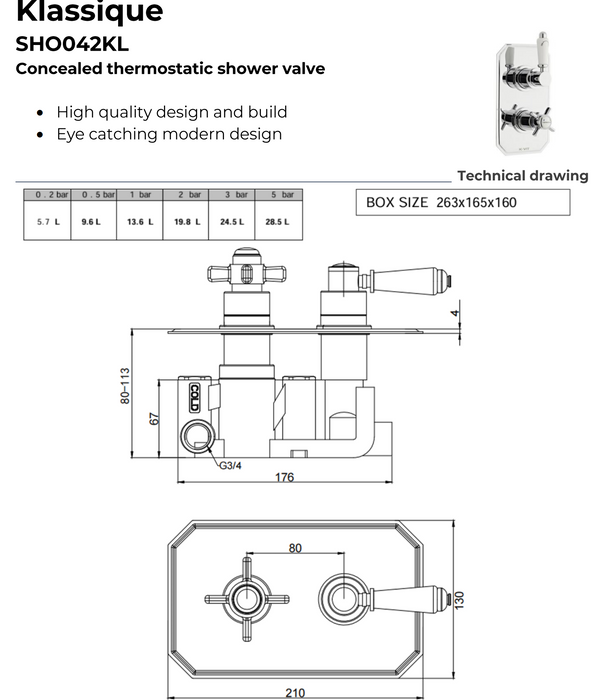 The Kartell K-VIT Klassique Concealed Thermostatic Shower Valve is a smart investment in style and performance. Designed for those who appreciate classic aesthetics without compromising on modern efficiency, it delivers a luxurious showering experience with every use.