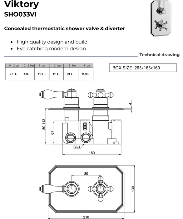 Kartell K-VIT Viktory Concealed Thermostatic Shower Valve with Diverter (SHO033VI)