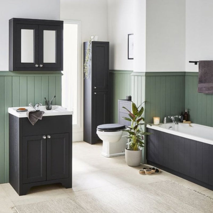 The Kartell K-VIT Buckingham 2 Door Floor Standing Side Storage Unit in Elegant Black Oak is a perfect blend of style, functionality, and durability, making it an excellent choice for those looking to enhance their bathroom with both practicality and elegance.