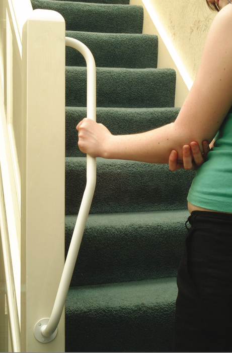 The AKW 1700 Series Newel Rail is a purpose-designed grab rail that provides essential support as users navigate the 90° turn around a staircase newel post. Crafted from robust mild steel with a durable white powder-coated finish, this rail is ideal for enhancing stair safety in residential and assisted living settings.