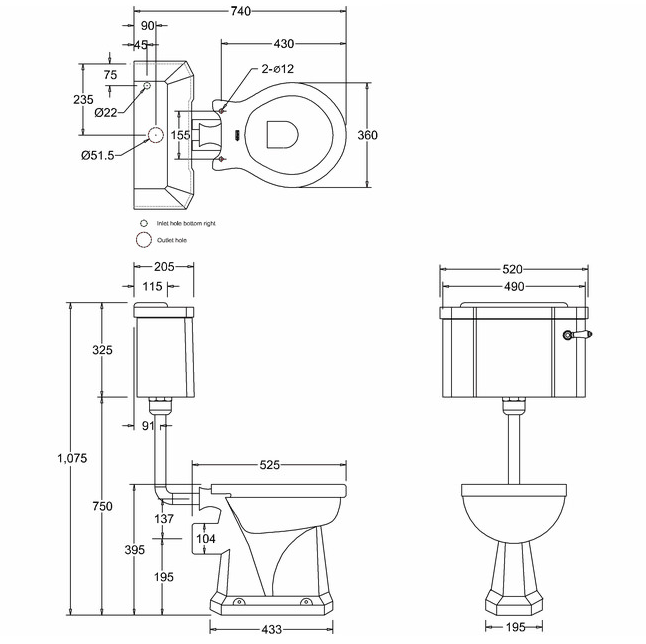 - Inlet Position: Located on the base of the cistern tank on the right side.