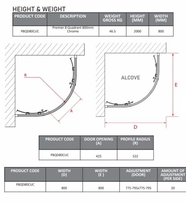 The Impey Coram Premier 8 8mm Plain Glass 800mm x 800mm Quadrant Shower Enclosure Chrome (P8QD80CUC) is a compact and stylish shower enclosure designed for those who want a high-quality, space-saving solution for their bathroom. Part of the Impey Coram Premier 8 range, this 800mm x 800mm quadrant enclosure combines durable materials with a sleek, modern design to create a premium shower experience.