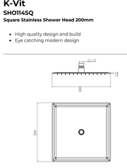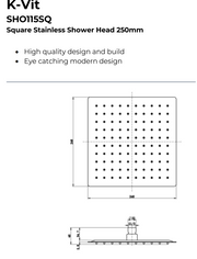 Kartell K-VIT Square Stainless Shower Head -Chrome (SHO114SQ)(SHO115SQ)(SHO116SQ)