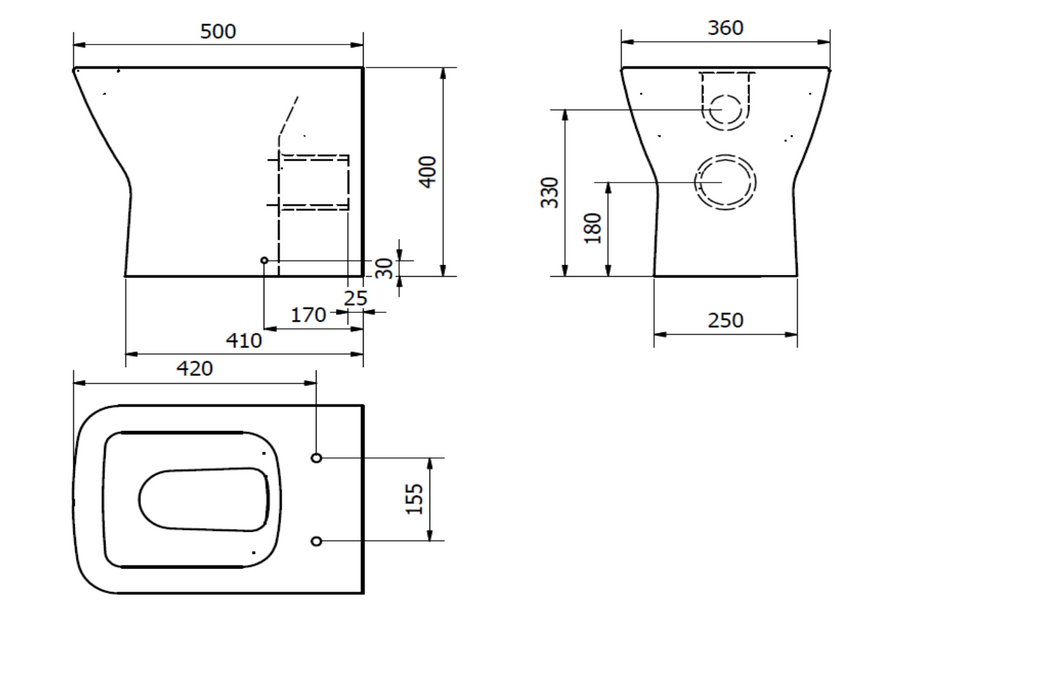 Back to Wall Design: The pan sits flush against the wall, concealing pipework for a clean and minimalist appearance.
