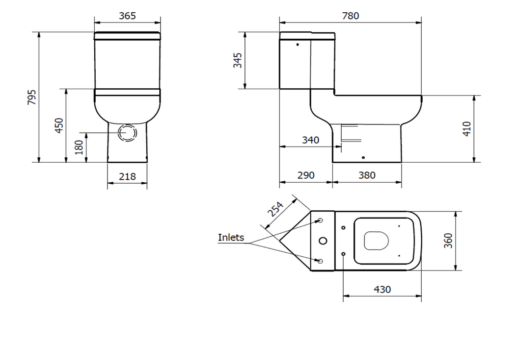 Total Height (including cistern): 780 mm