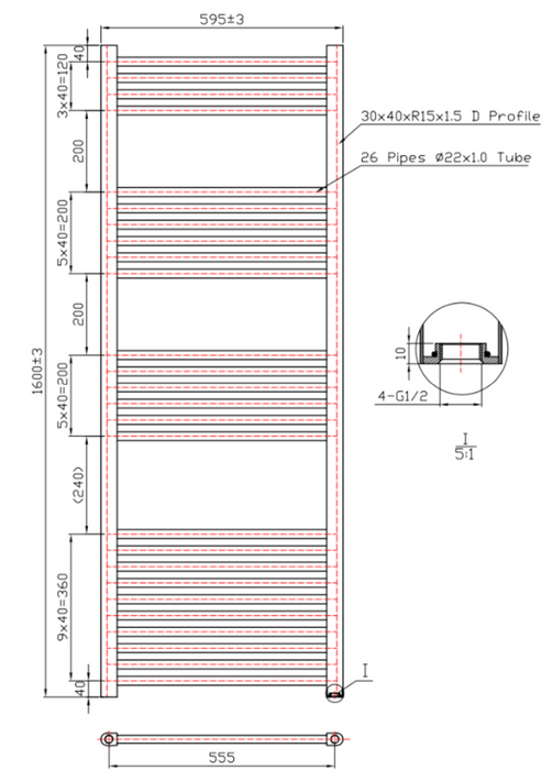 Kartell K-VIT K-Rail 22mm Straight Heated Towel Rail Black (STR416B)(STR516B)(STR616B)