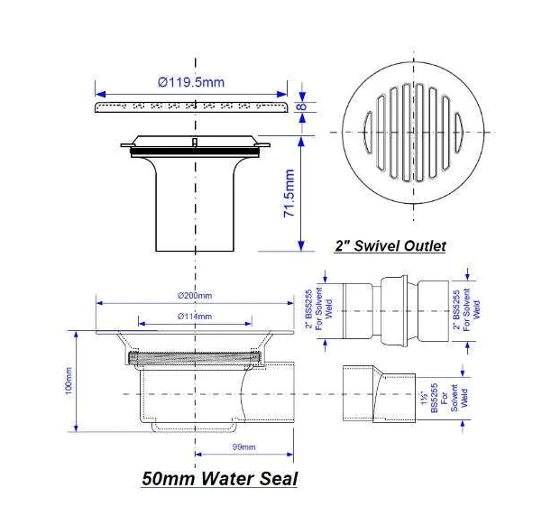 - Versatile Two-Piece Gully: Suitable for use with screed or timber floors and floor formers, allowing for plumbing before the floor installation.